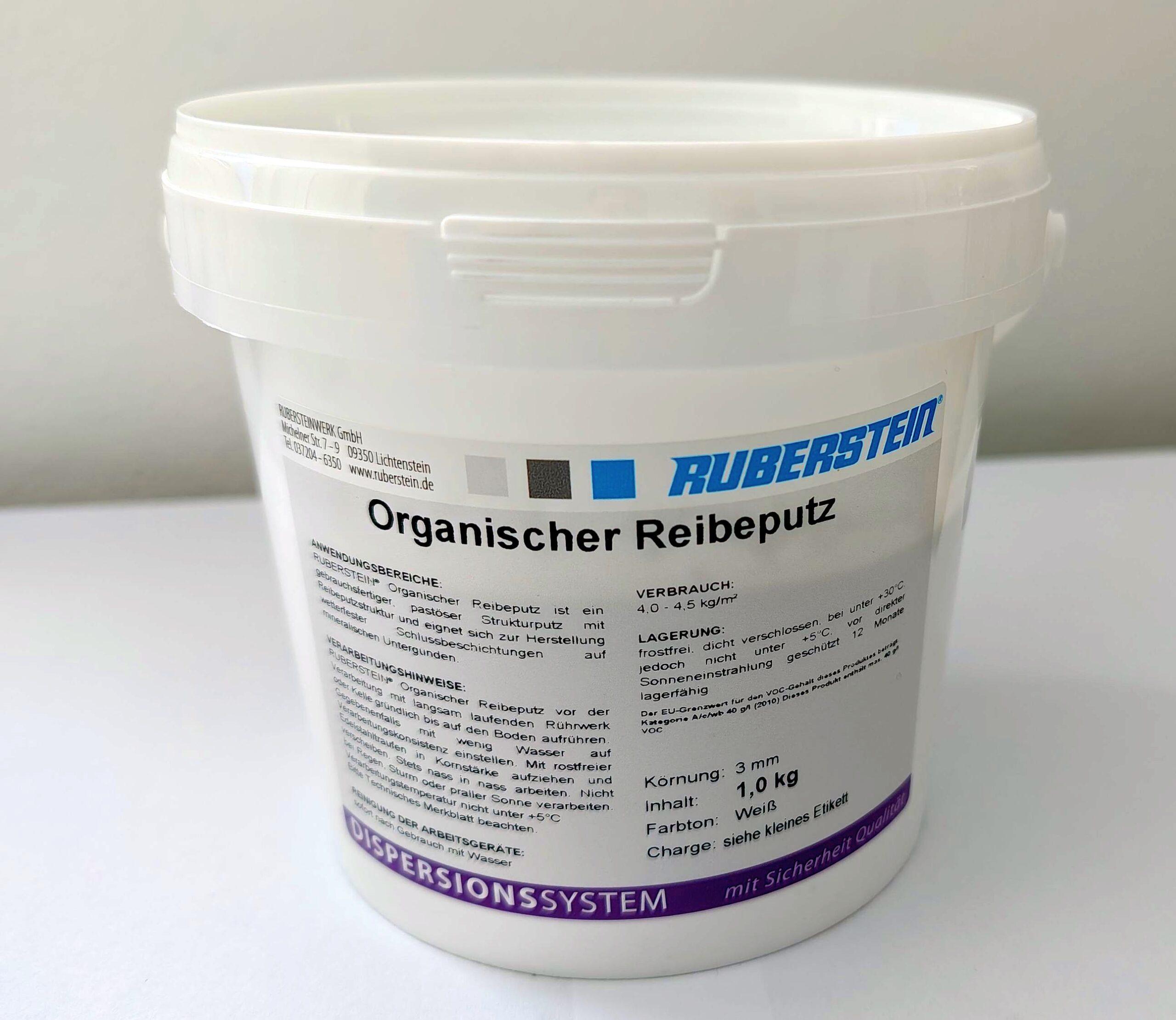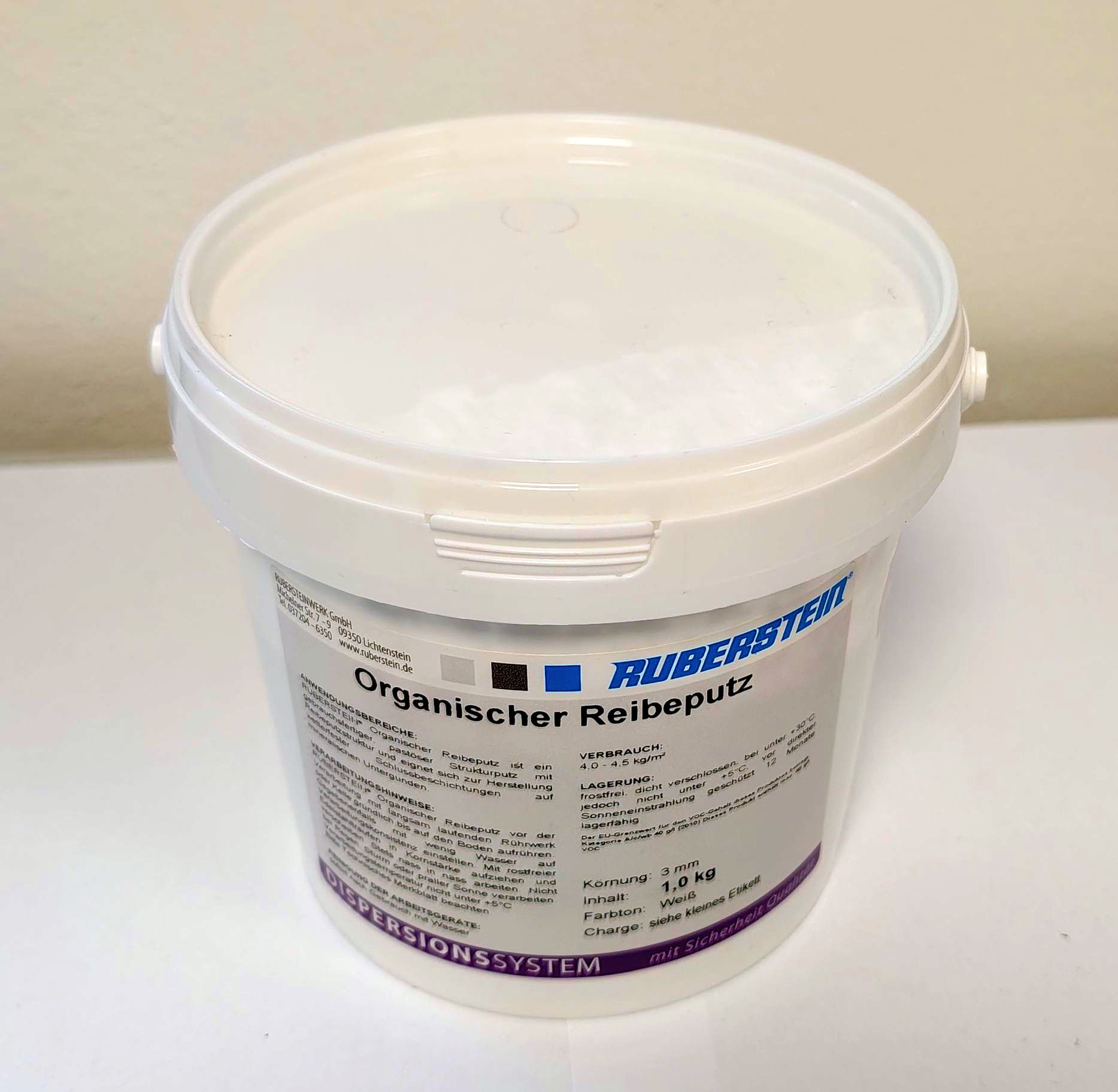Ruberstein® Organischer Reibeputz ist ein gebrauchsfertiger, pastöser Putz, der im Aussenbereich zur Herstellung von wetterfesten Schlussbeschichtungen seine Anwendung findet. Als Untergründe sind Kalk-Zement-Putze und pastöse, zementhaltige Spachtel geeignet, nicht geeignet sind Mörtel aus der Mörtelgruppe P I. Wichtige Informationen zum Produkt finden Sie auf unserer Homepage https://www.ruberstein.de/strukturputz-aussen.html . Bitte beachten Sie auch die Verarbeitungshinweise auf dem Datenblatt.